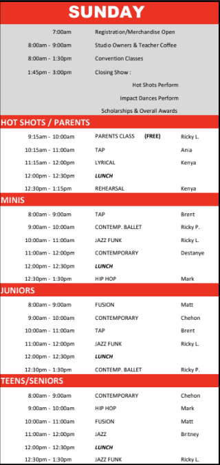 * Students are responsible to bring their own solo/duo/trio costume, undergarments, jazz shoes, foot paws, ballet shoes, pointe shoes, tap shoes.